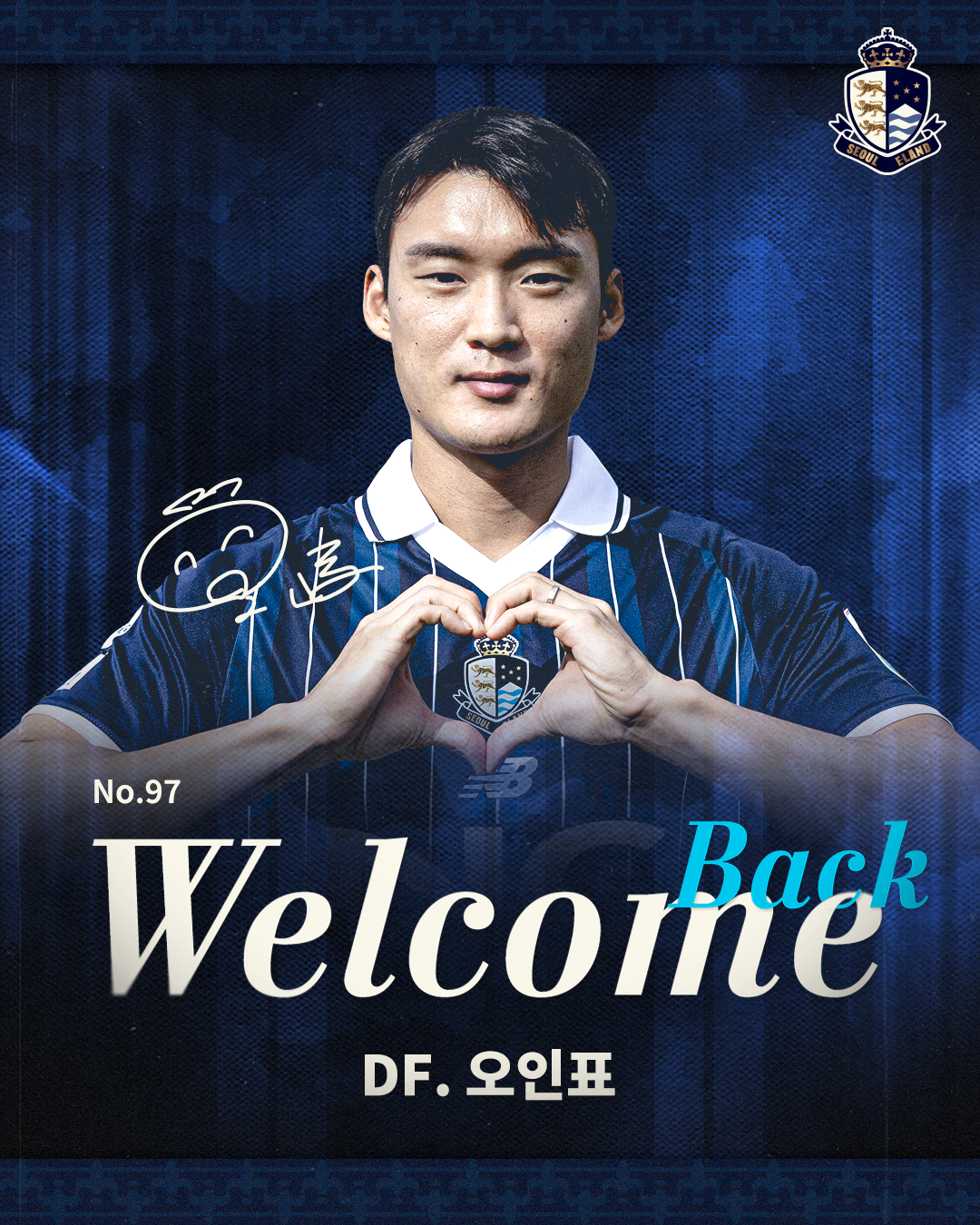 - 오인표, 군 복무 마치고 복귀··· 정규리그 막바지 시점 마지막 전력 보강, 등번호 97번